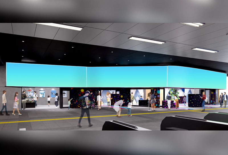 | 1社買切 | ■メイン媒体 大型サイネージ:1.98m×31.74m 約62㎡ イベントスペース:約160㎡(物販可) ■オプション媒体 改札周辺壁面シート 店舗前フロアシート 柱巻きシート |