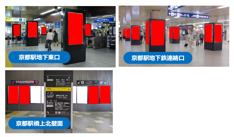 京都駅に設置されているタテ型サイネージの3媒体をお得なセットにしました。